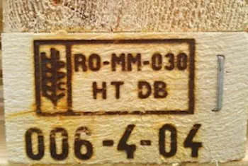 Marcajul tratamentului fitosanitar ( IPPC ), codul producătorului, anul și luna, respectiv, clema de certificare a celui care certifică
